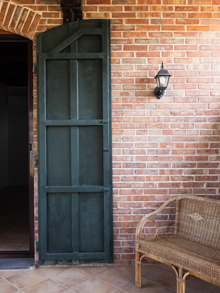 La particolarità di questa camera sono le pareti, in mattoncini, rossi come i melograni del nostro giardino, che si possono ammirare dal terrazzo della camera e i soffitti in travi di legno di castagno che donano un calore unico alla camera.